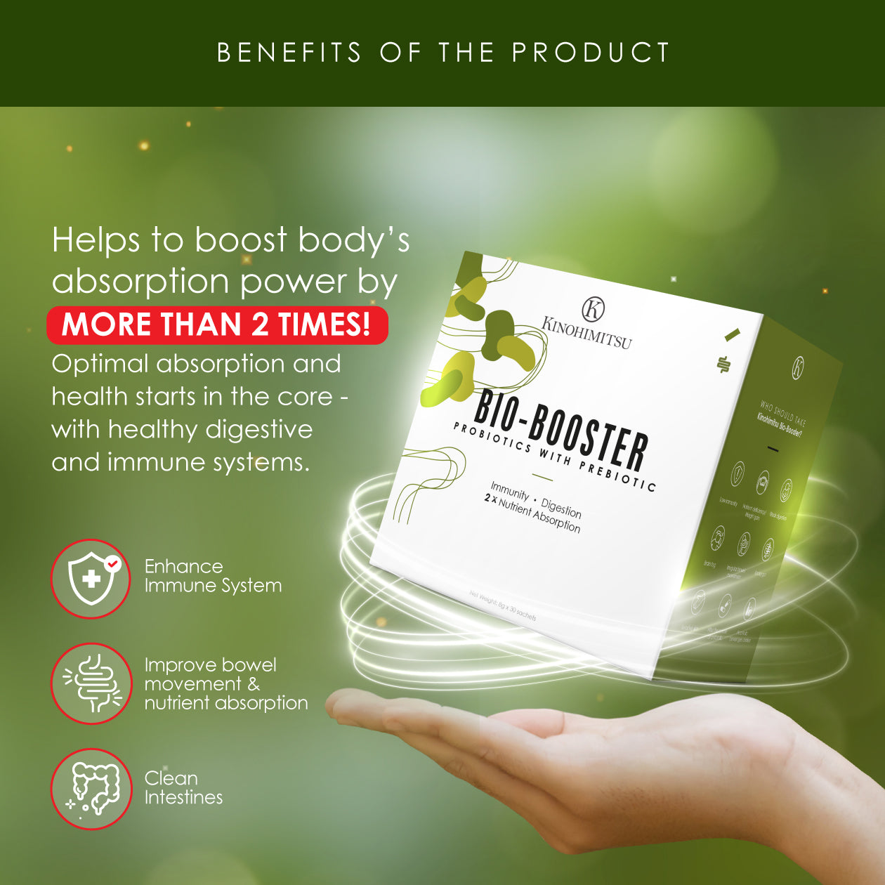 Kinohimitsu Bio-Booster is your stress fighter, nurturing a healthy gut—the key to energy, mood, and stress management. It balances cortisol, keeping you focused, energised, and refreshed.