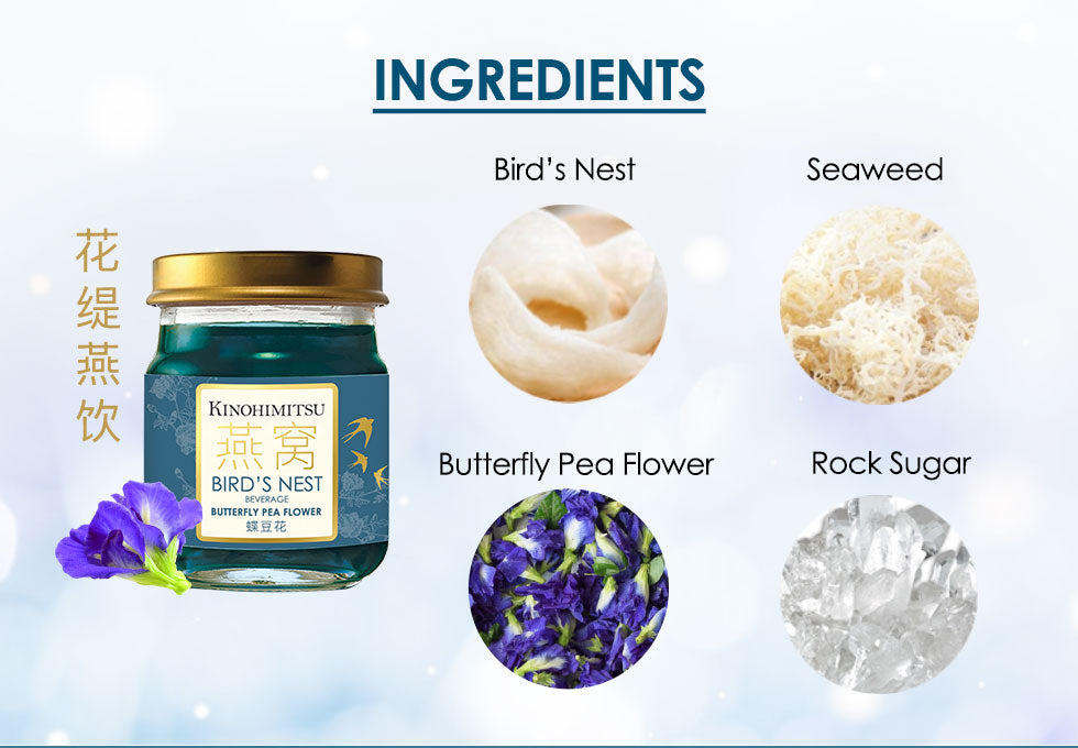 A visually captivating blend of bird’s nest infused with butterfly pea flower, admired for its natural blue hue and gentle floral aroma. Double-boiled to preserve its clarity and smooth texture — a refreshing twist on a classic favourite.
