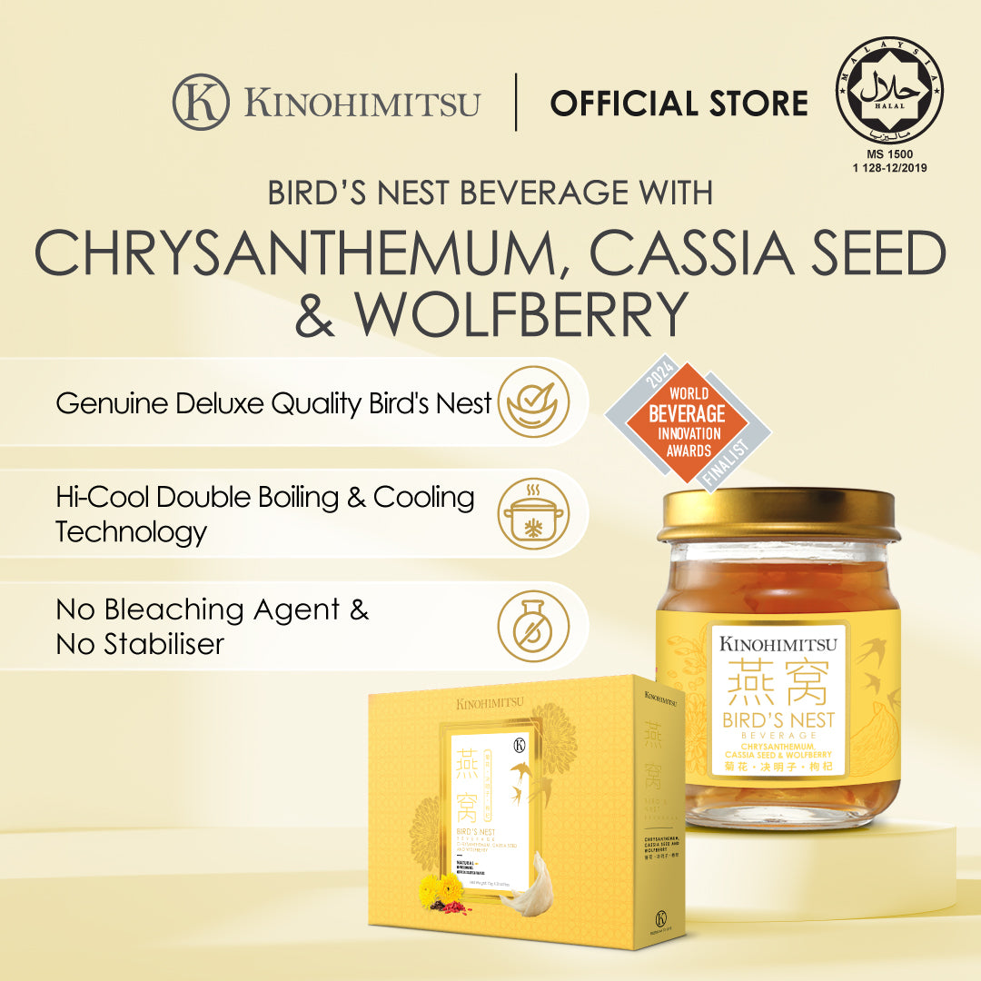 A graceful blend of bird’s nest, chrysanthemum, cassia seed, and wolfberry — offering a gentle floral aroma and light, naturally sweet taste. Carefully double-boiled to preserve its clarity and smooth texture, it’s a soothing indulgence for calm, balanced moments.