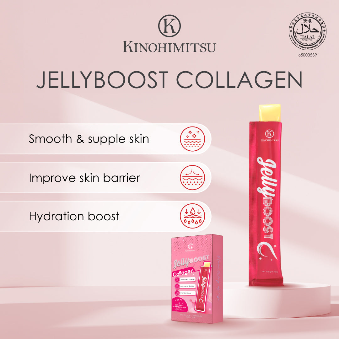 Tired of dull, dry skin? Kinohimitsu JellyBoost Collagen is your tasty fix—hydrating, firming, and smoothing skin while boosting elasticity for a healthy glow