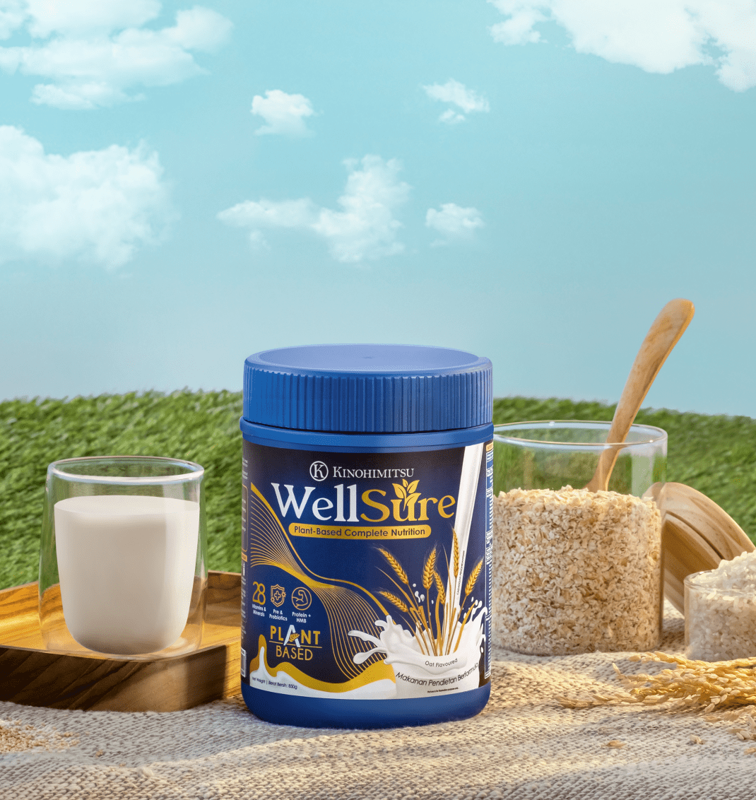 Fuel your body with Kinohimitsu WellSure, a scientifically designed plant-based nutrition formula that’s more than a meal replacement! Packed with 4 premium plant proteins (Soy, Pea, Quinoa, and Rice), HMB, and 28 vitamins and minerals, it provides strength, vitality, and complete nutrition for an active lifestyle. With 5x more Vitamin C than leading products, it also balances gut health, boosts immunity, and supports muscle mass. Perfect for busy individuals, recovering patients, and anyone seeking wholesome daily nutrition.