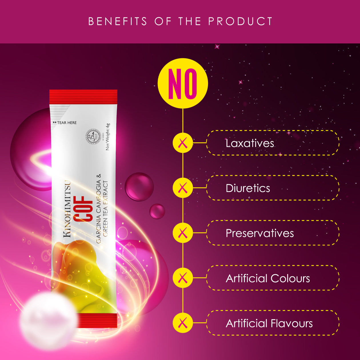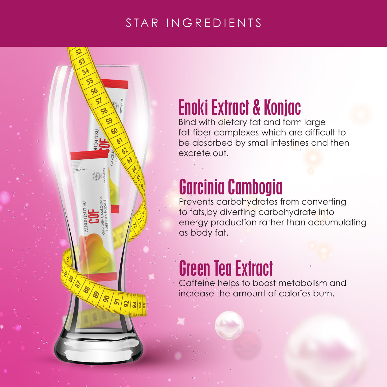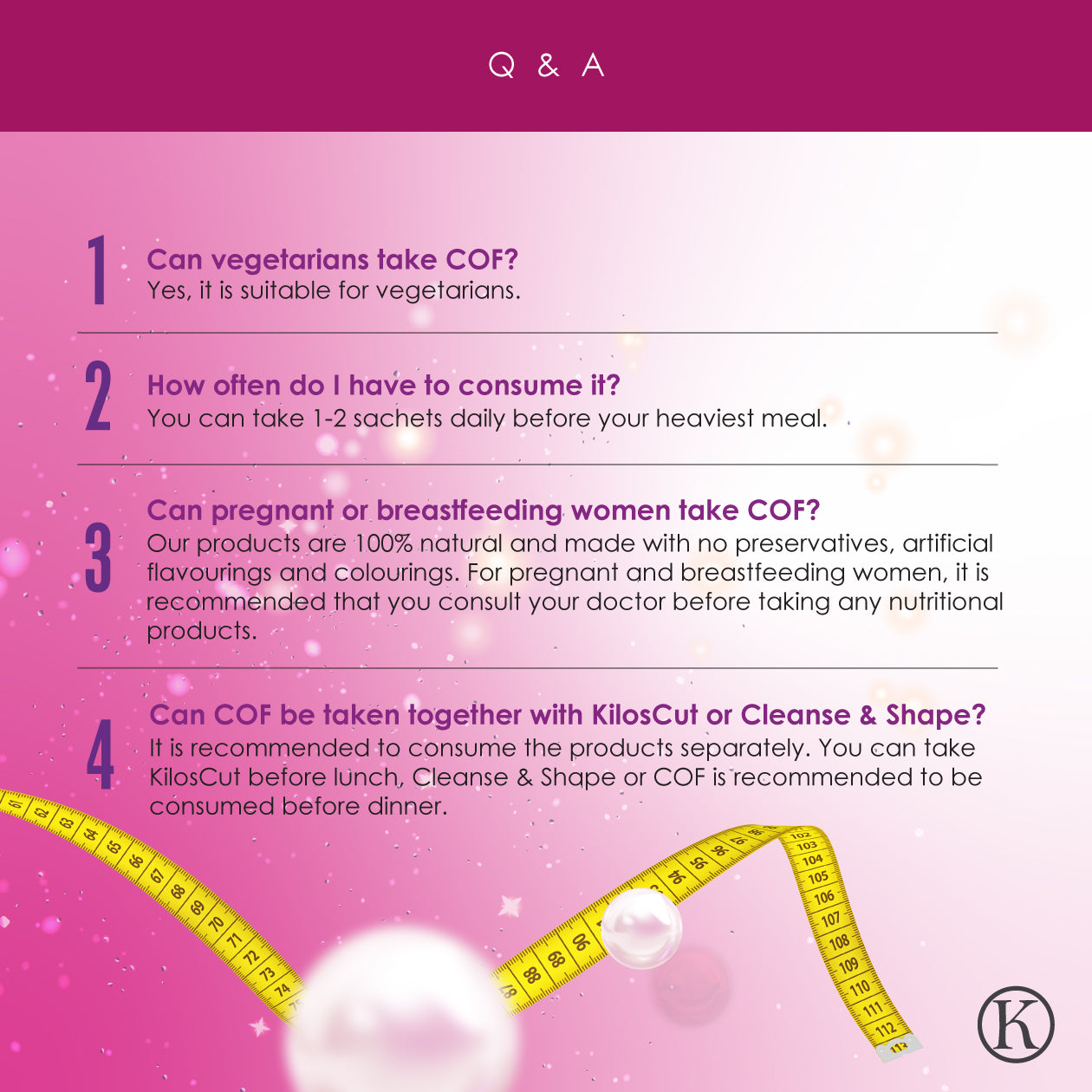 Enjoy your favourite meals guilt-free! COF’s unique cut-oil formula curbs fat absorption, boosts metabolism, and targets stubborn areas—all in a vegetarian-friendly, fruity drink