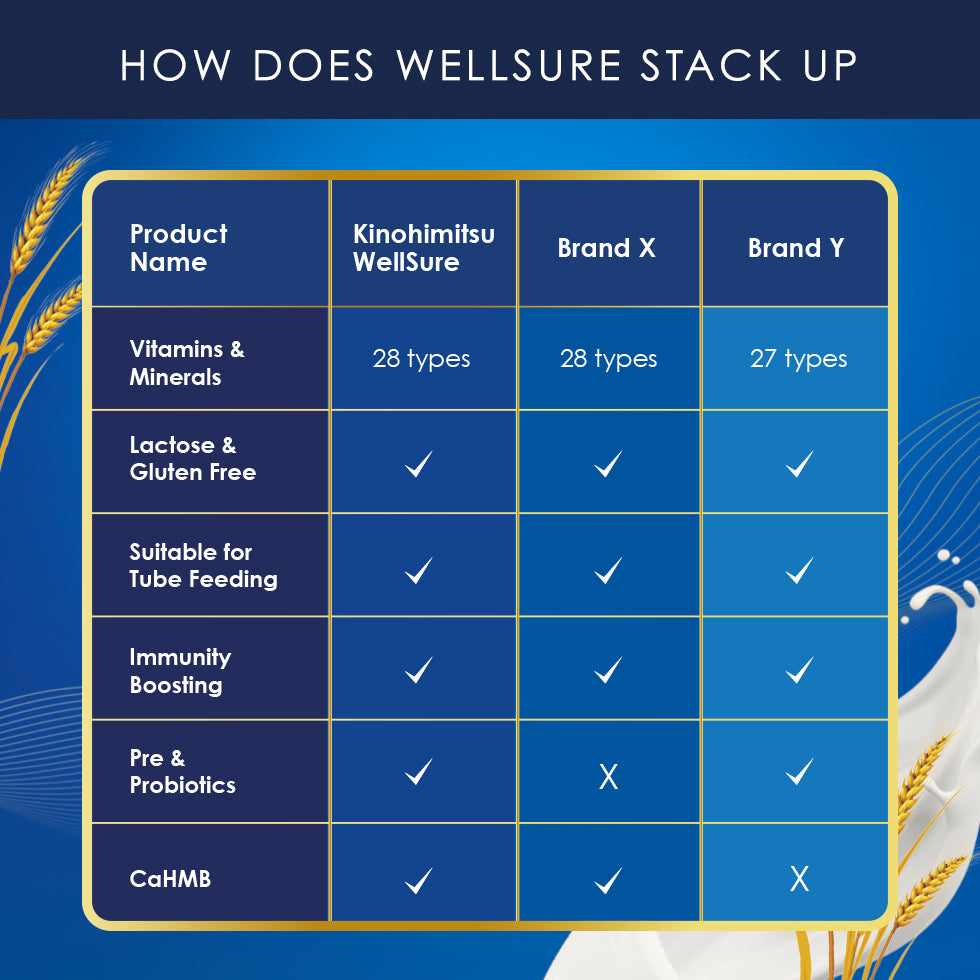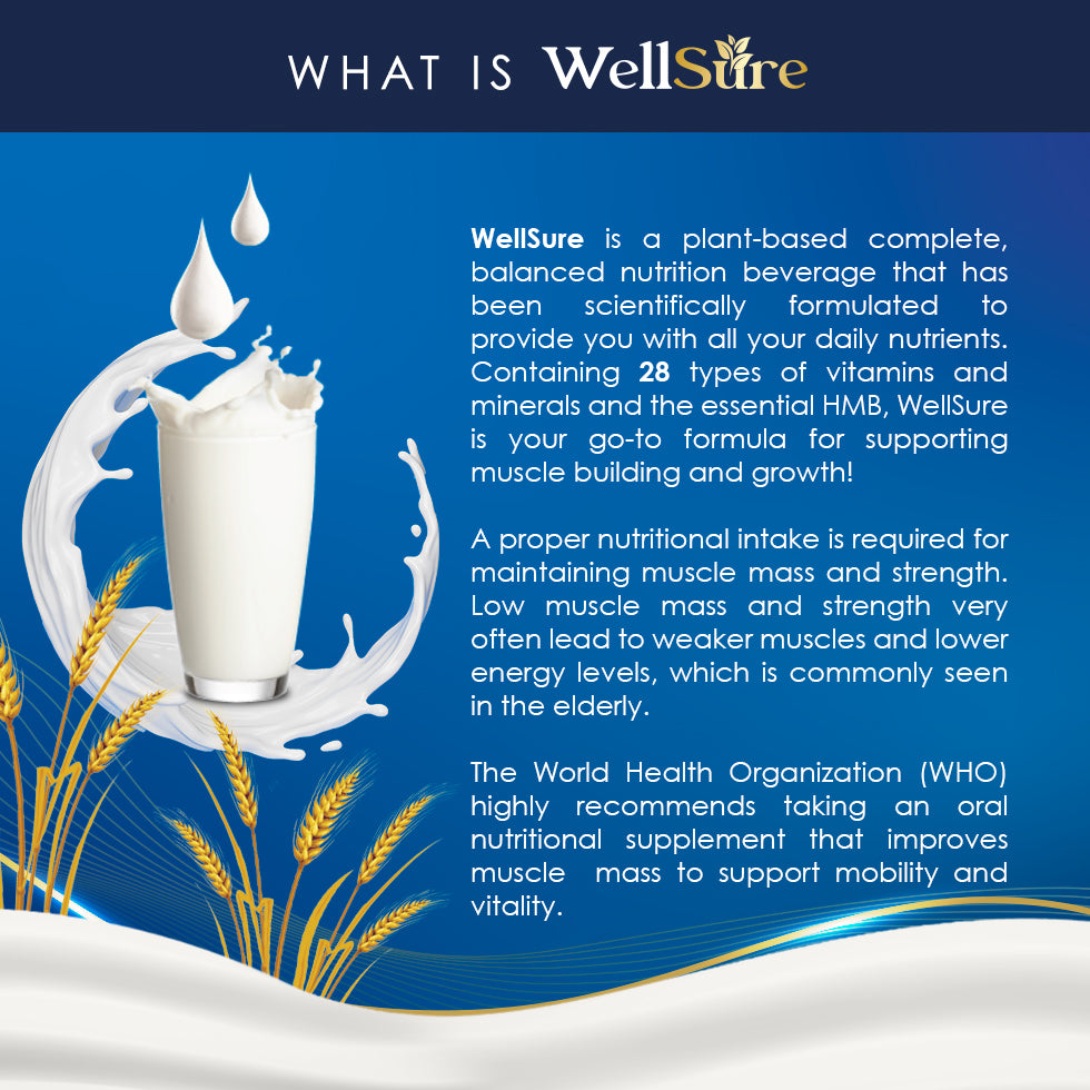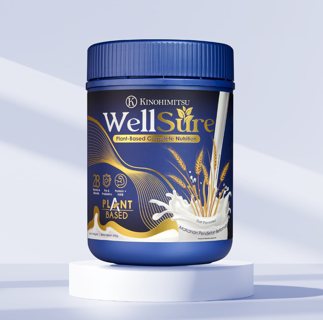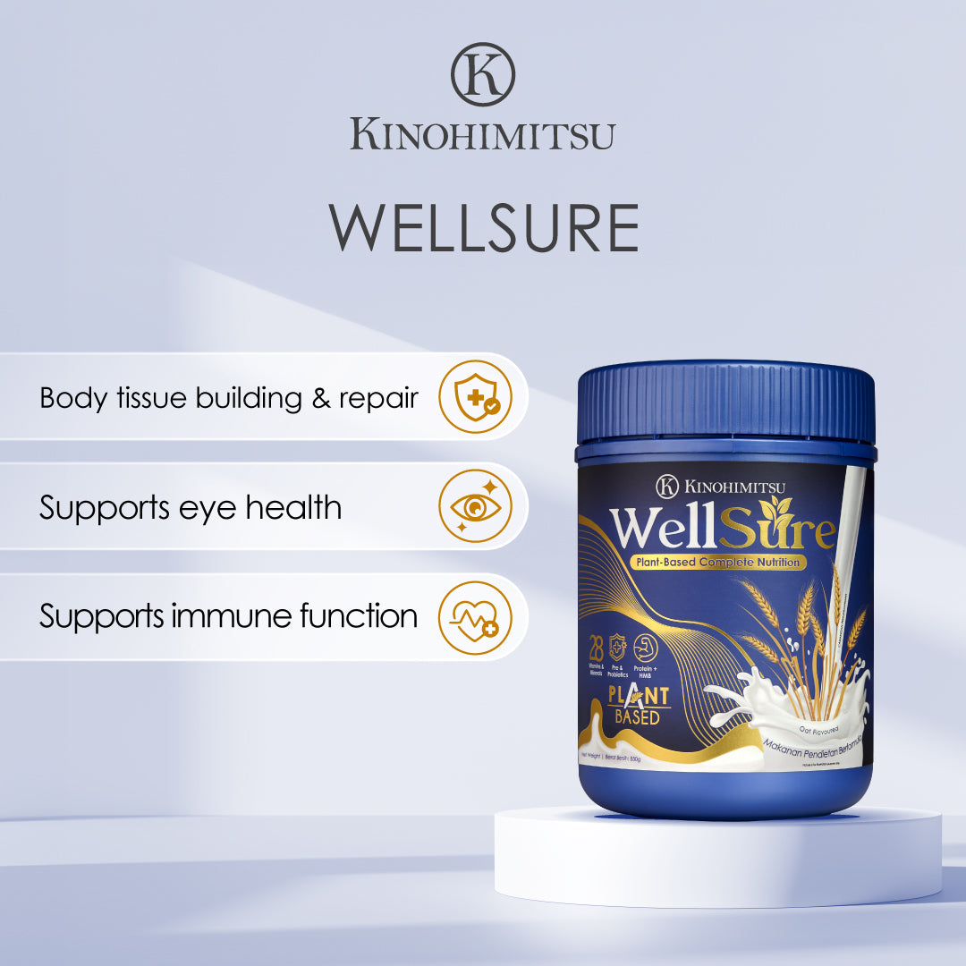 Fuel your body with Kinohimitsu WellSure, a scientifically designed plant-based nutrition formula that’s more than a meal replacement! Packed with 4 premium plant proteins (Soy, Pea, Quinoa, and Rice), HMB, and 28 vitamins and minerals, it provides strength, vitality, and complete nutrition for an active lifestyle. With 5x more Vitamin C than leading products, it also balances gut health, boosts immunity, and supports muscle mass. Perfect for busy individuals, recovering patients, and anyone seeking wholesome daily nutrition.
