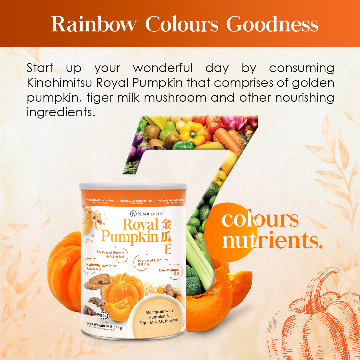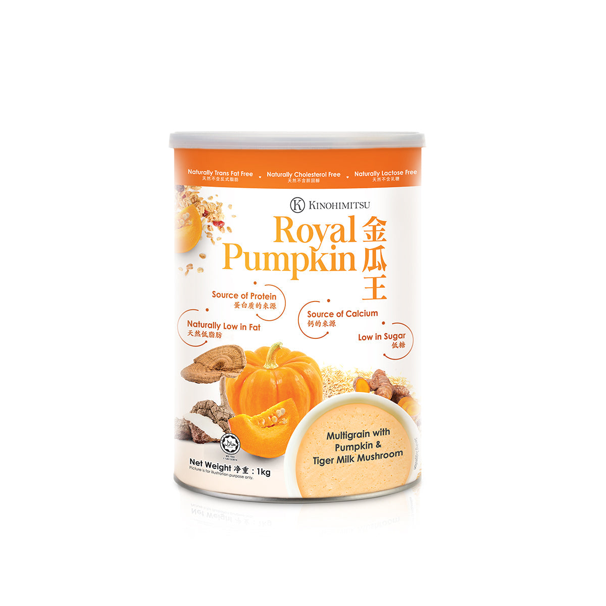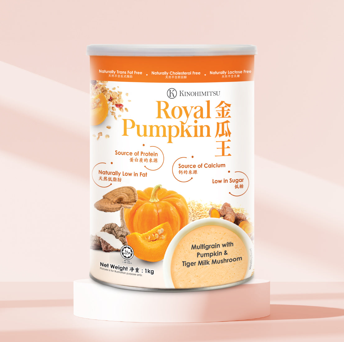 Kinohimitsu Royal Pumpkin is your go-to powdered multigrain blend infused with golden pumpkin, tiger milk mushroom, and wholegrains. This nourishing breakfast option is designed for busy mornings, offering a convenient and low-sugar alternative to traditional breakfast beverages.