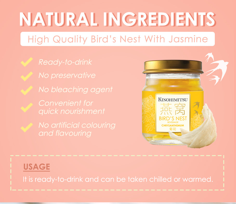A delicate fusion of bird’s nest and chrysanthemum, offering a gentle floral aroma and clean, refreshing taste. Carefully double-boiled to preserve its natural clarity and smooth texture — a light indulgence made for moments of calm.