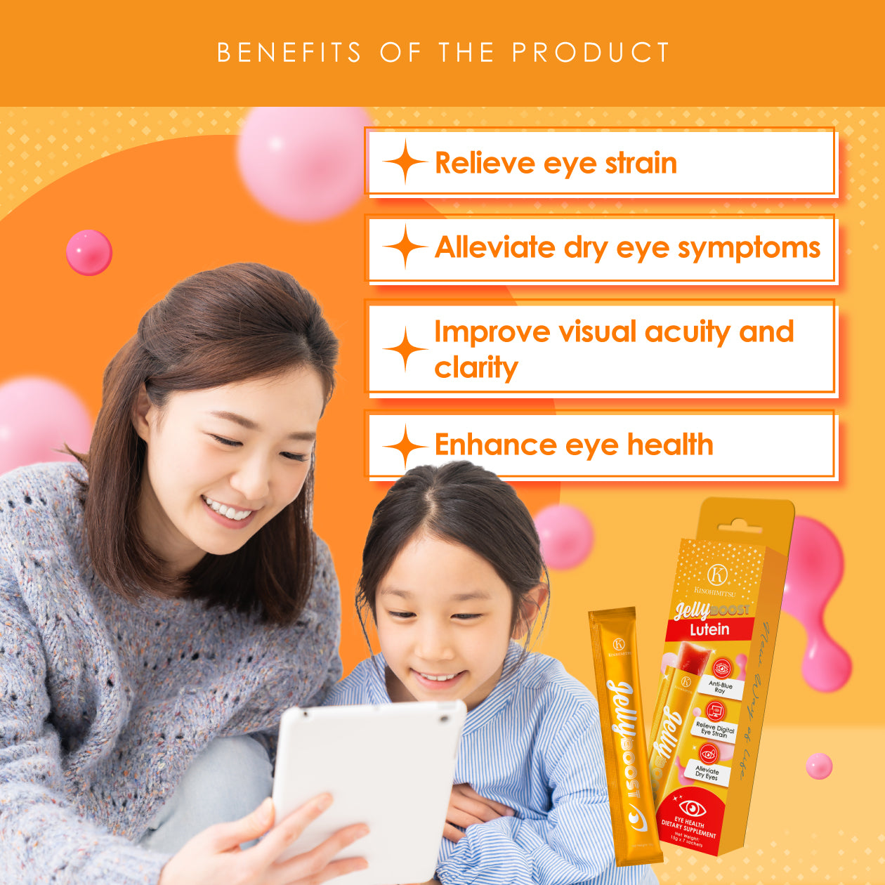 With Kinohimitsu JellyBoost Lutein, you can enjoy a classic lychee jelly stick while giving your eyes a much-needed boost. Feel refreshed and nostalgic with every bite, and cut down on eye strain, fatigue, and dryness caused by relentless blue light emissions from our digital devices.