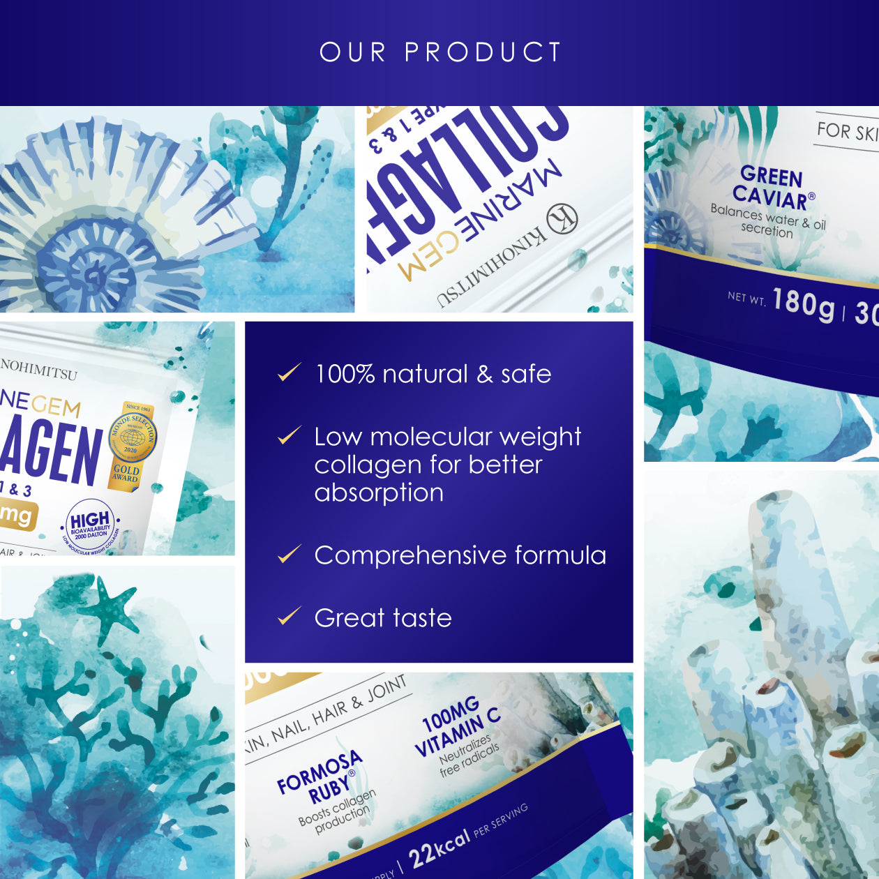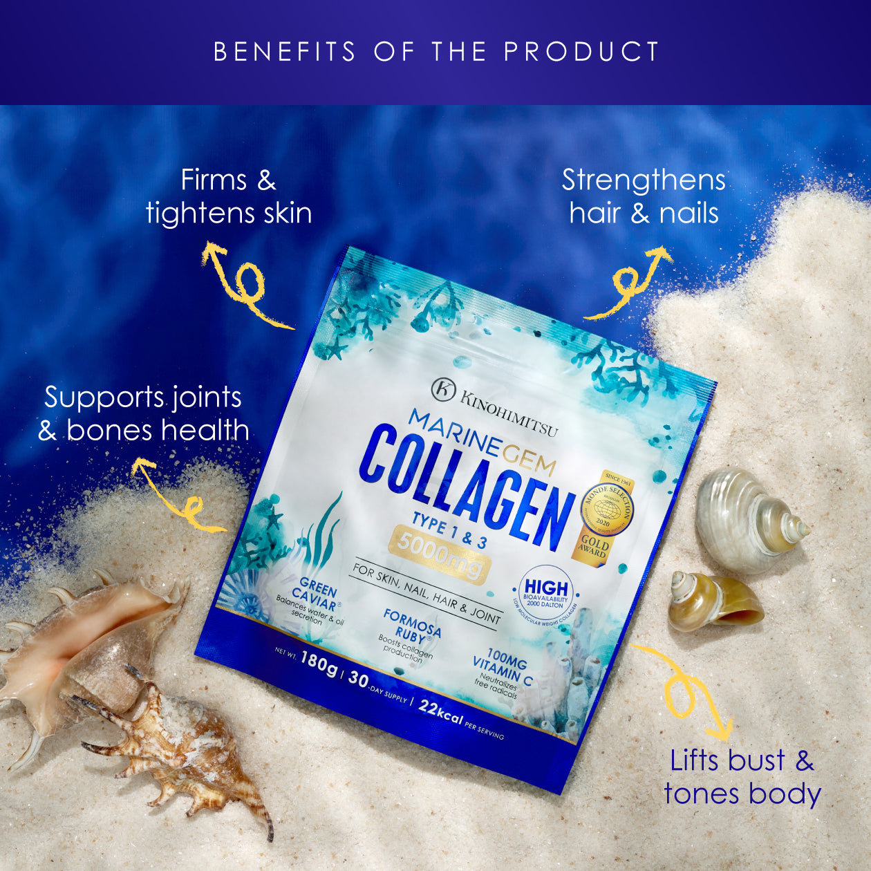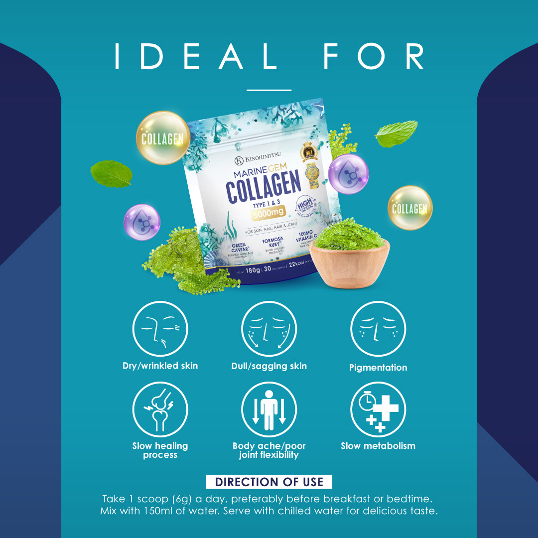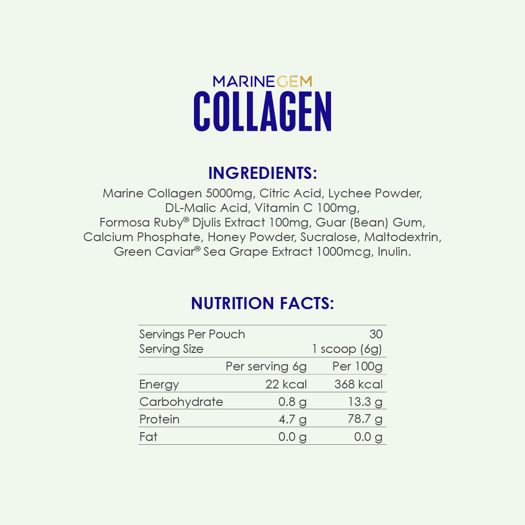 Packed with Marine Collagen Peptides, Green Caviar®, and Vitamin C, this skin-loving powder rejuvenates and strengthens. Mix it into water, your favorite drinks, or treats instantly.
